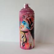 L'artiste a utilisé les techniques Posca, Graffiti et collage pour créer cette sculpture petit format sur aérosol de style Street Art.