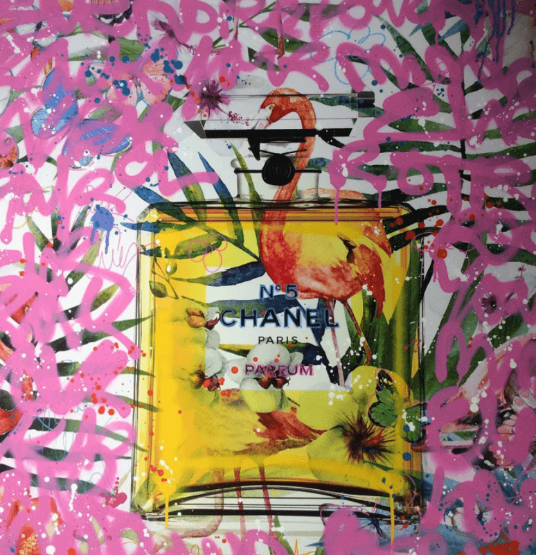 Son tableau Chanel fait partie des créations qui lui ont permis de se démarquer des autres artistes de son époque. Il fait partie de sa collection pop art au même titre que Bowie, Marilyne Monroe, Mercury et Rihanna. Il représente Gabrielle Chanel. Il s'agit d'un cadre Chanel de petite taille qui peut servir de décoration pour toutes les pièces de la maison.