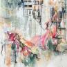 L'artiste a utilisé les techniques mixte et la peinture acrylique: Collages, textures, papiers, pastels et autre médiums pour créer cette peinture petit format sur toile de style semi-abstrait.
