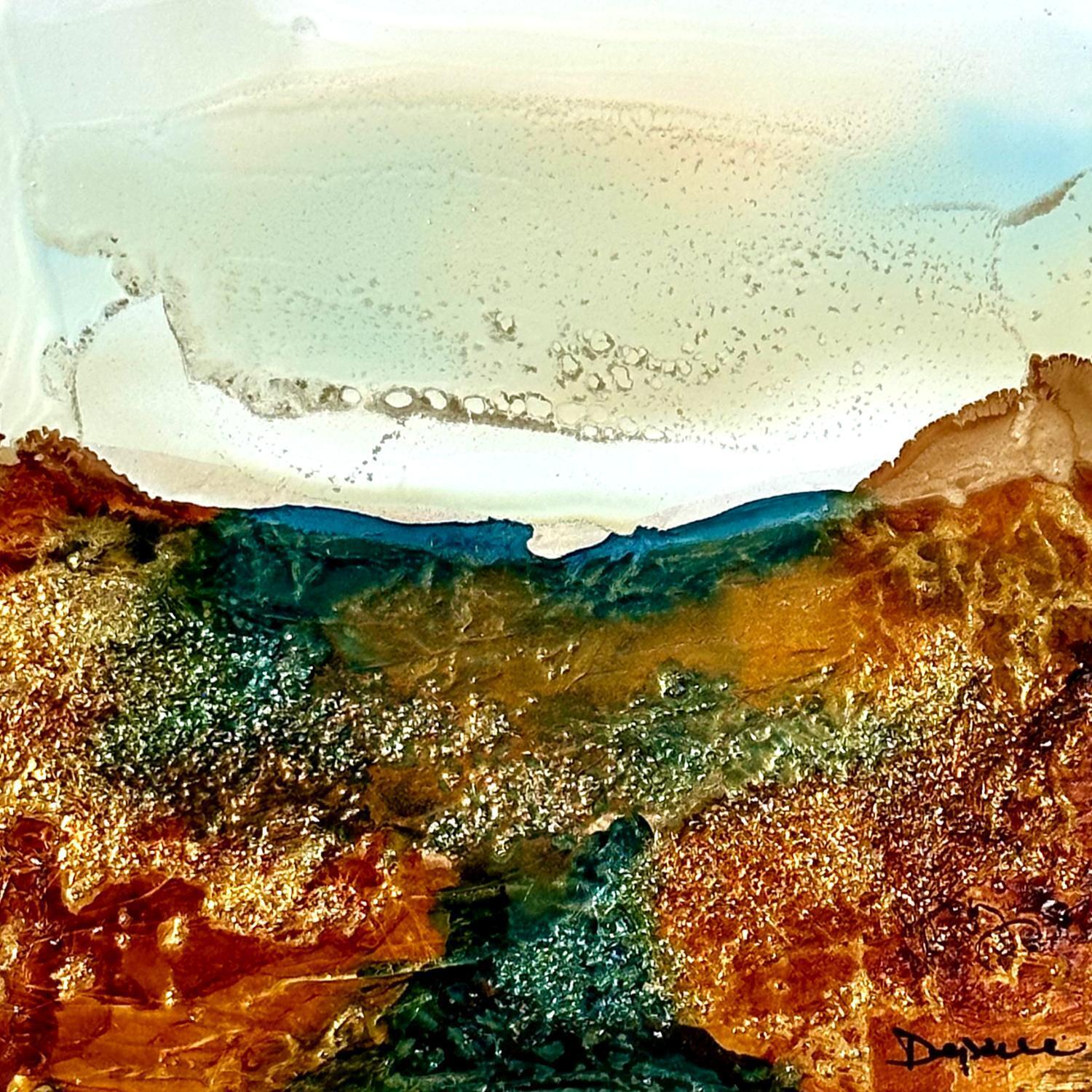 L'artiste a utilisé la technique Acrylique pour créer cette peinture petit format sur Dibon de style Abstrait sur les thèmes Marine, Paysages.