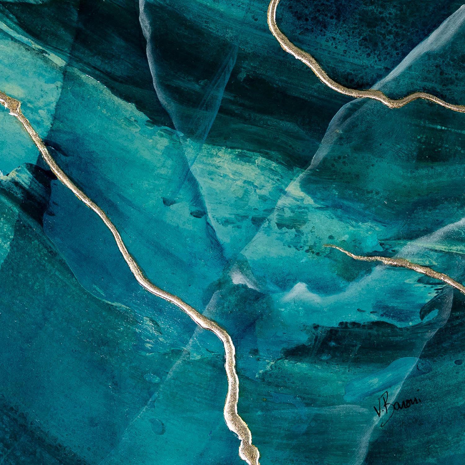 L'artiste a utilisé les techniques Acrylique, Feuille d'or pour créer cette peinture petit format sur Papier de style Abstrait.