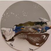 L'artiste a utilisé les techniques Acrylique, Encre pour créer cette peinture petit format sur Dibon de style Abstrait sur le thème Minimaliste.