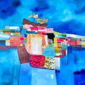 L'artiste a utilisé les techniques Acrylique, Collage, Feuille d'or, Pastel pour créer cette peinture grand format sur Toile de style Abstrait sur le thème Paysages.
