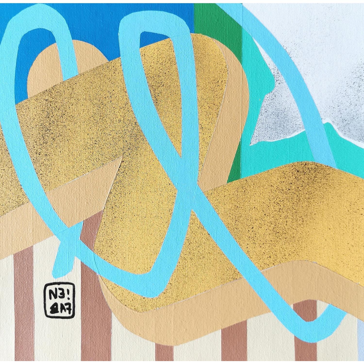 L'artiste a utilisé les techniques Acrylique, Graffiti pour créer cette peinture petit format sur Toile de style Abstrait sur le thème Paysages.