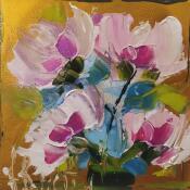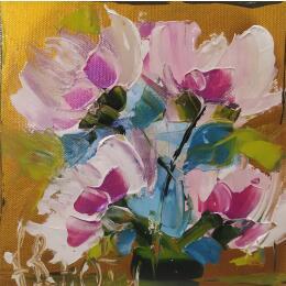 Cette oeuvre d'art contemporain unique et originale "Pivoines sous fond noir" a été réalisée par l'artiste contemporain Bastide d´Izard Armelle.