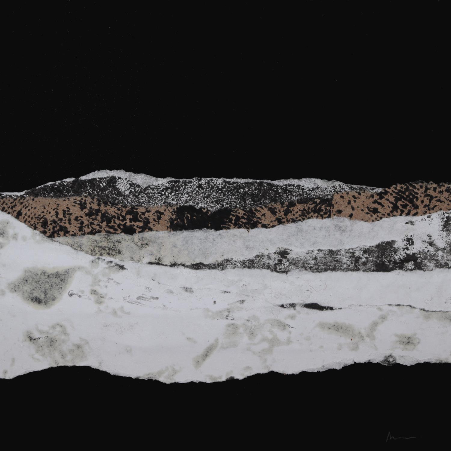 L'artiste a utilisé la technique Collage pour créer cette peinture petit format sur Papier de style Abstrait sur les thèmes Paysages, Minimaliste, Noir & blanc.