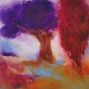Peinture Paysage Rouge Violet 2 par Chebrou de Lespinats Nadine | Tableau Abstrait Paysages Huile