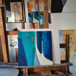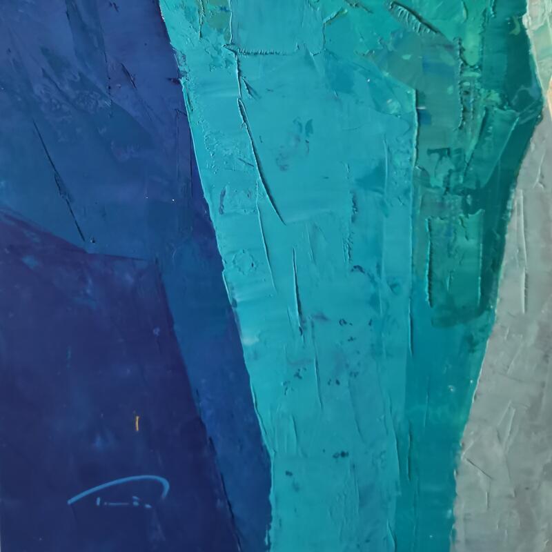 L'artiste a utilisé la technique Huile pour créer cette peinture petit format sur Papier de style Abstrait sur les thèmes Scènes de vie, Urbain.