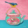 Peinture Oiseau sur théière chinoiseroe par Sally B | Tableau Art Singulier Animaux Enfant Natures mortes Acrylique