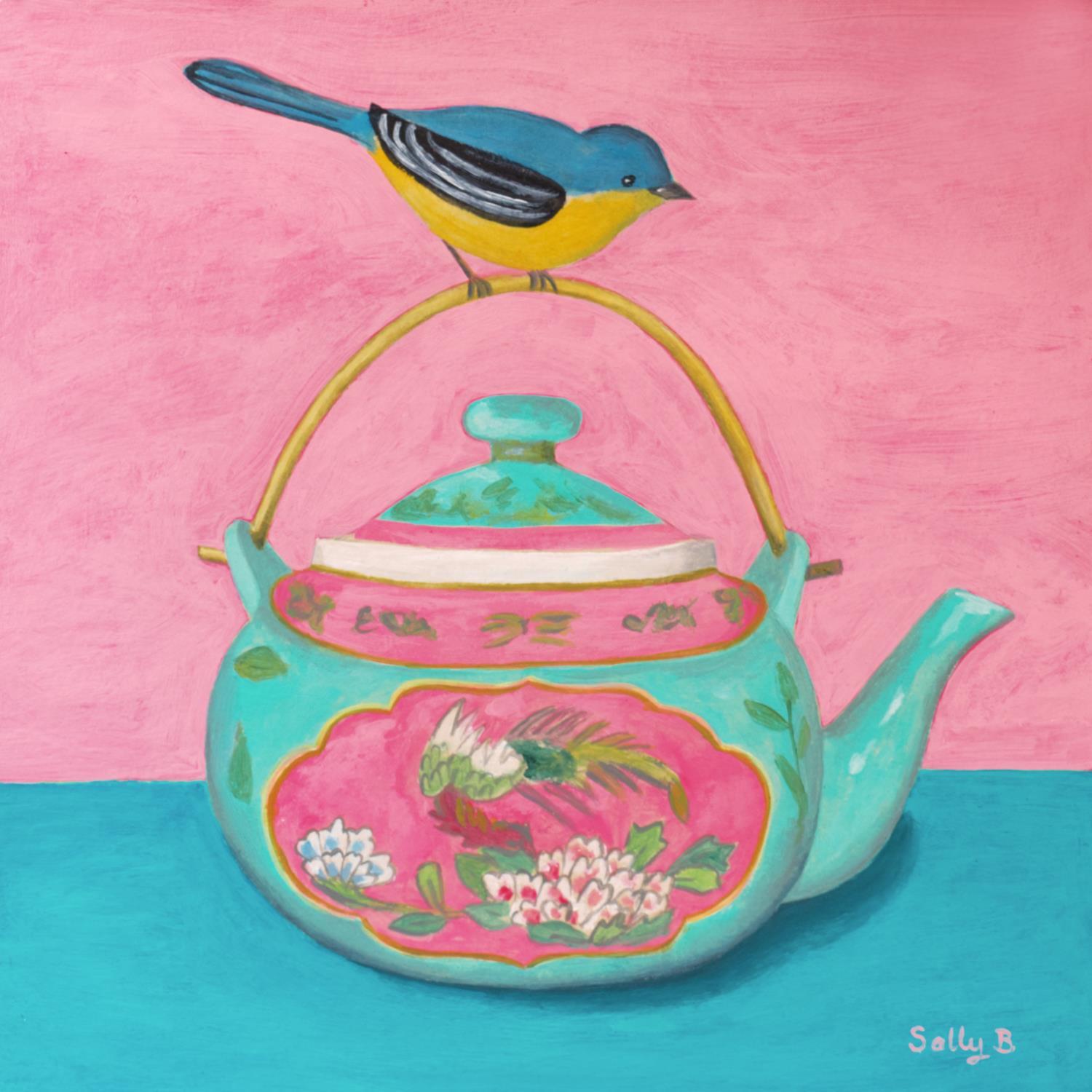 Oiseau sur théière chinoiseroePeinture Oiseau sur théière chinoiseroe par Sally B | Tableau Art Singulier Animaux Enfant Natures mortes Acrylique