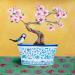 Peinture Oiseau et bonsai cerisier  par Sally B | Tableau Art Singulier Nature Enfant Natures mortes Acrylique