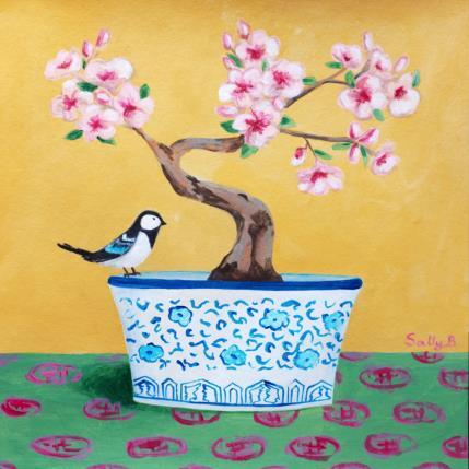 Cette oeuvre d'art contemporain unique et originale "F2 Oiseau et bonsai cerisier " a été réalisée par l'artiste contemporain Sally B.