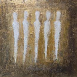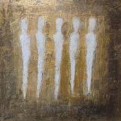 L'artiste a utilisé les techniques Acrylique, Collage, Sable pour créer cette peinture petit format sur Carton toilé de style Art Singulier.