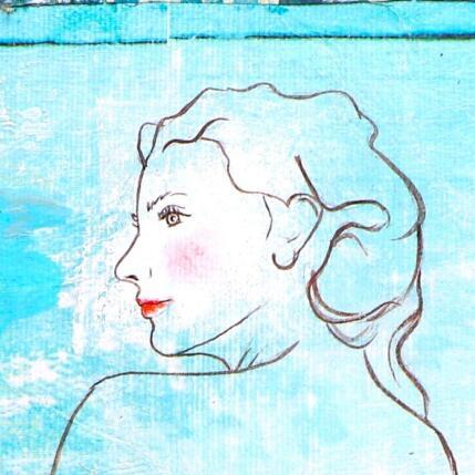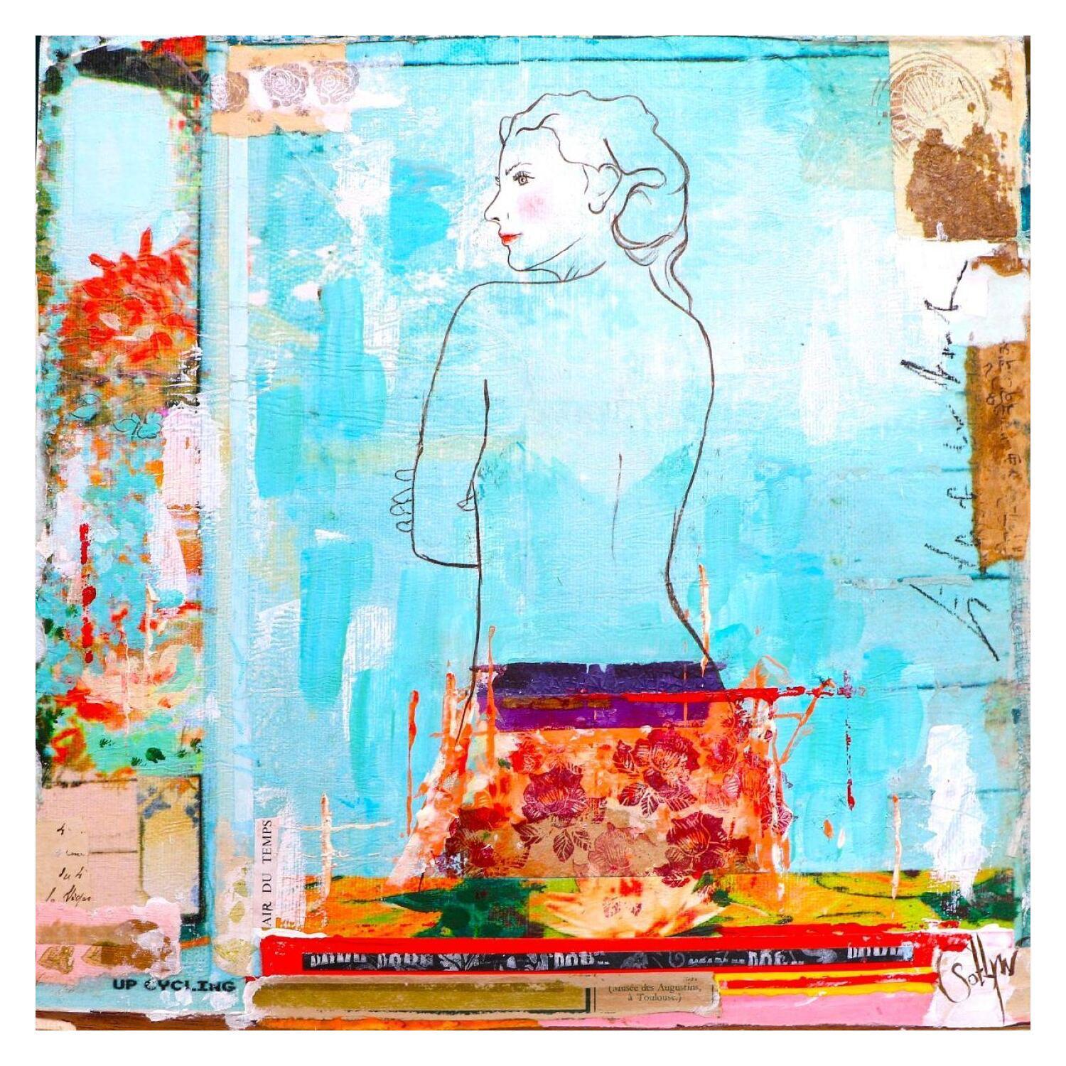 L'artiste a utilisé la technique mixte, Encre, Acrylique, Estampage, Upcycling pour créer cette peinture petit format toile sur Bois de style Art Singulier.