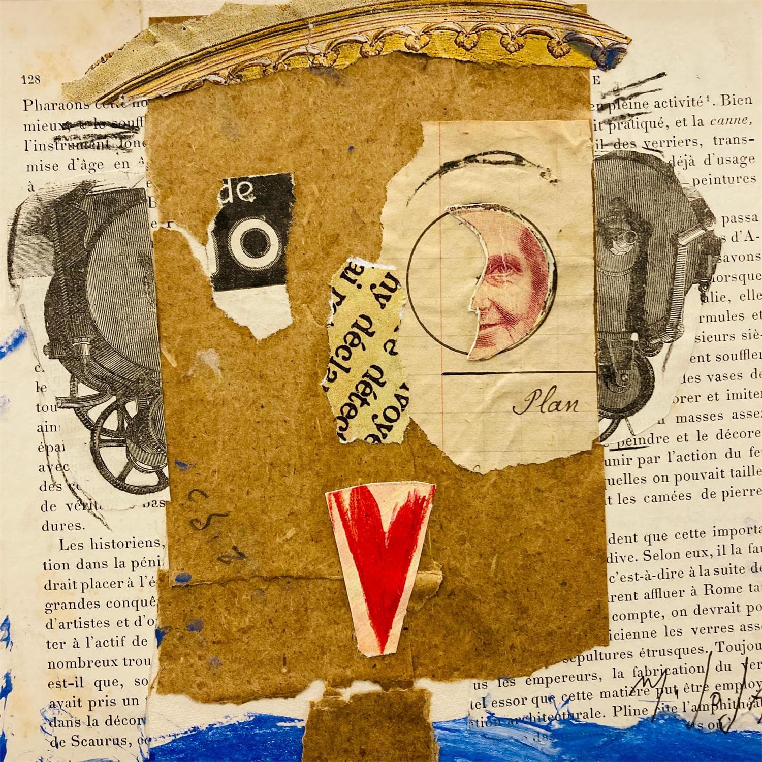L'artiste a utilisé différentes techniques pour créer cette peinture petit format sur papier de style Art Singulier sur le thème scènes de vie.