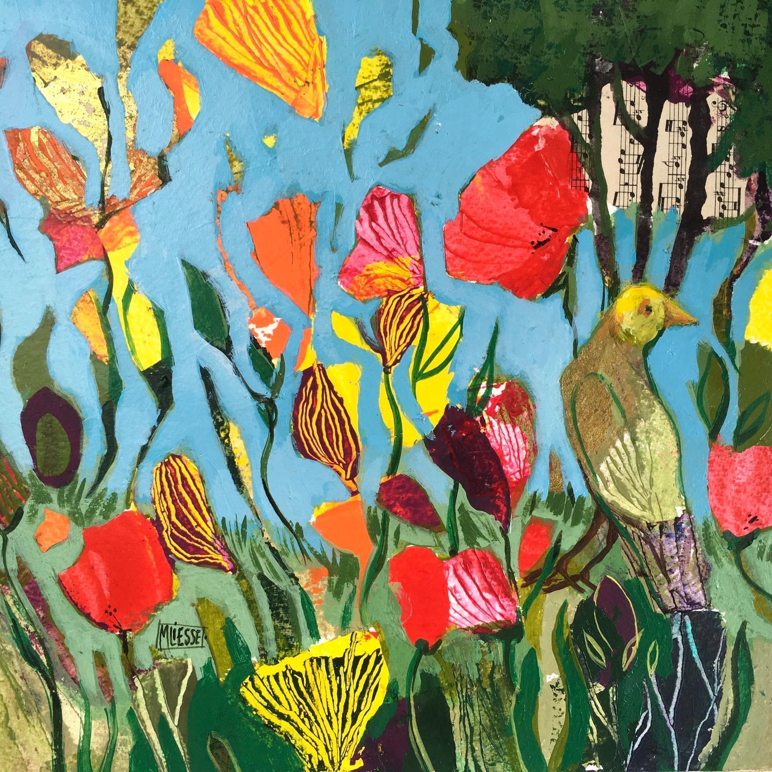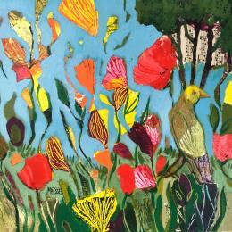 Cette oeuvre d'art contemporain unique et originale "L’oiseau parmi les fleurs 3" a été réalisée par l'artiste contemporain Bertre Flandrin Marie-Liesse.