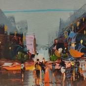 L'artiste a utilisé la technique Acrylique pour créer cette peinture petit format sur Toile de style Figuratif sur les thèmes Architecture, Scènes de vie, Urbain.