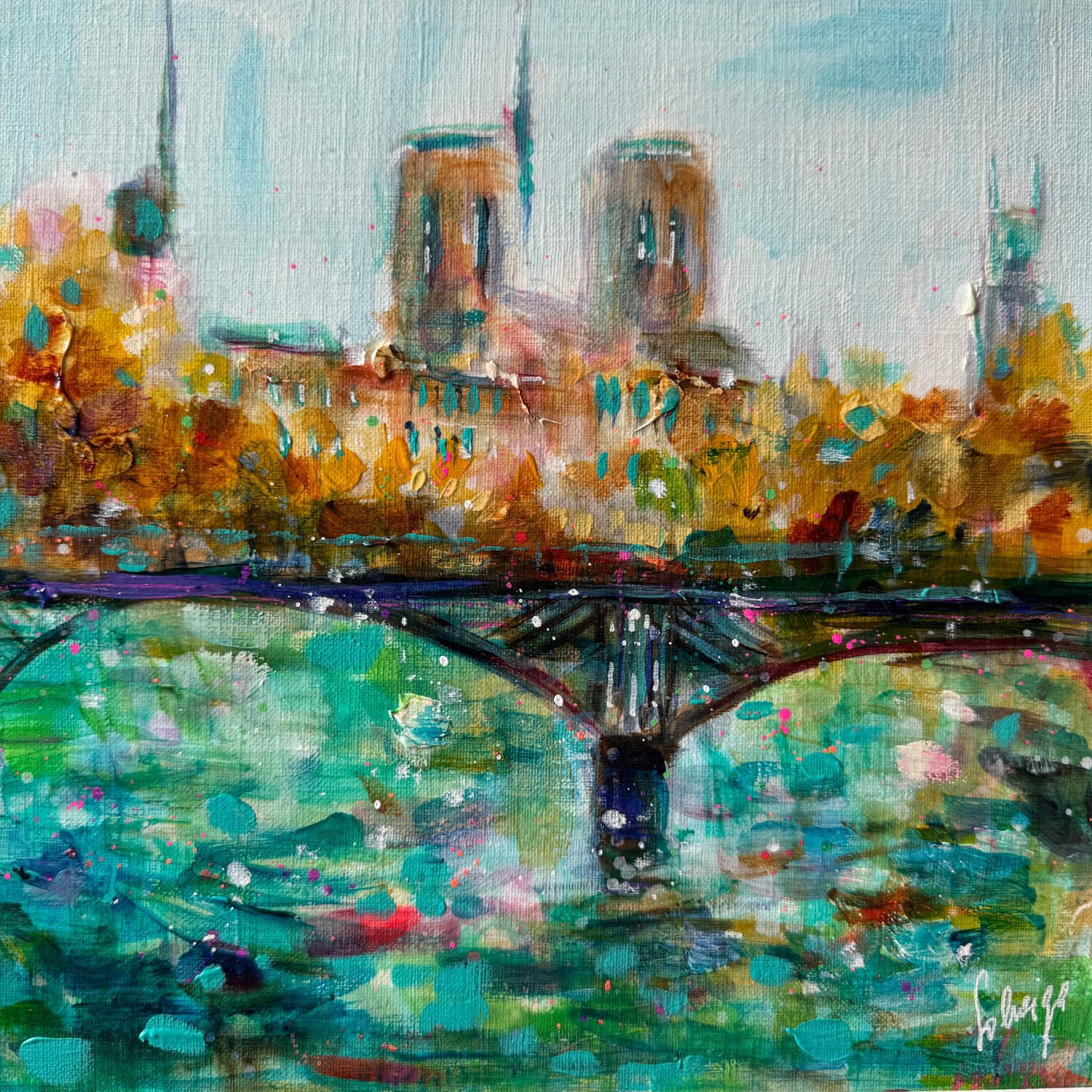 Peinture Golden autumn  par Solveiga | Tableau Figuratif Urbain Scènes de vie Architecture Acrylique