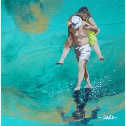 L'artiste a utilisé la technique Acrylique pour créer cette peinture petit format sur Toile de style Figuratif sur les thèmes Marine, Scènes de vie.