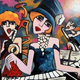 L'artiste a utilisé la technique Acrylique pour créer cette peinture petit format sur Bois de style Figuratif sur les thèmes Musique, Scènes de vie.