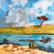 Cette oeuvre d'art contemporain unique et originale "Au bord de la rivière " a été réalisée par l'artiste contemporain Bertre Flandrin Marie-Liesse.