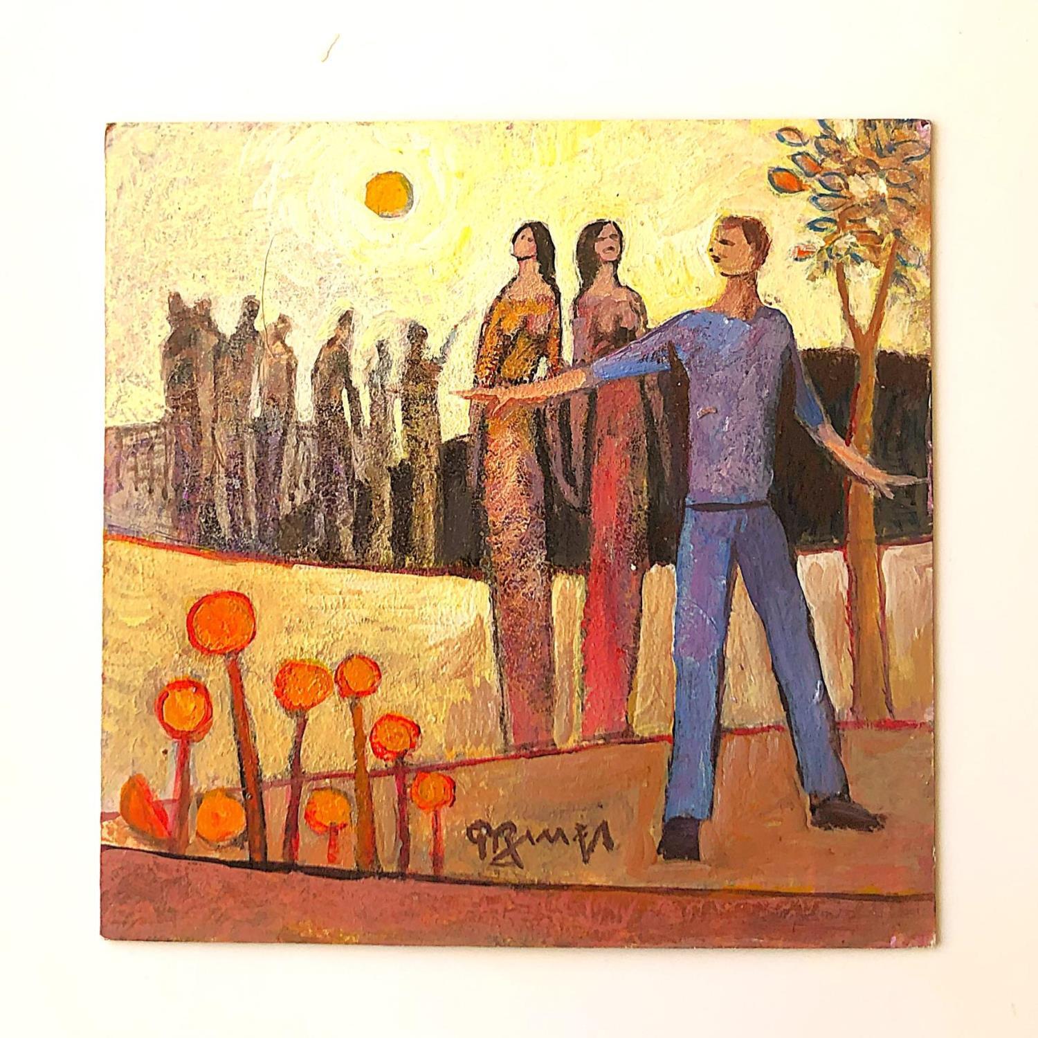 L'artiste a utilisé la technique Acrylique pour créer cette peinture petit format sur Papier de style Figuratif sur les thèmes Nature, Paysages, Scènes de vie.