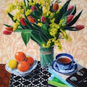 L'artiste a utilisé les techniques Acrylique, Plexiglas, Posca pour créer cette peinture grand format sur Plexiglas de style Figuratif sur le thème Natures mortes.