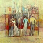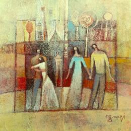 L'artiste a utilisé la technique Acrylique pour créer cette peinture petit format sur Papier de style Figuratif sur les thèmes Paysages, Scènes de vie, Société.