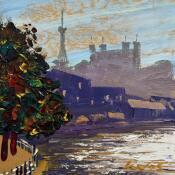 L'artiste a utilisé la technique Acrylique pour créer cette peinture petit format sur Bois de style Figuratif sur les thèmes Paysages, Urbain.