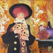 L'artiste a utilisé les techniques Acrylique, Collage pour créer cette peinture petit format sur Carton toilé de style Figuratif sur les thèmes Portraits, Scènes de vie.