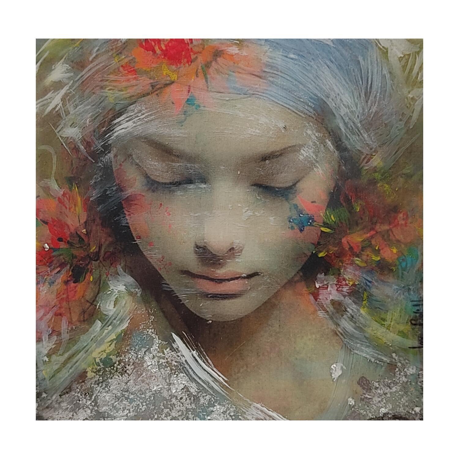 L'artiste a utilisé les techniques Acrylique, Résine pour créer cette peinture petit format sur Bois de style Figuratif sur le thème Portraits.