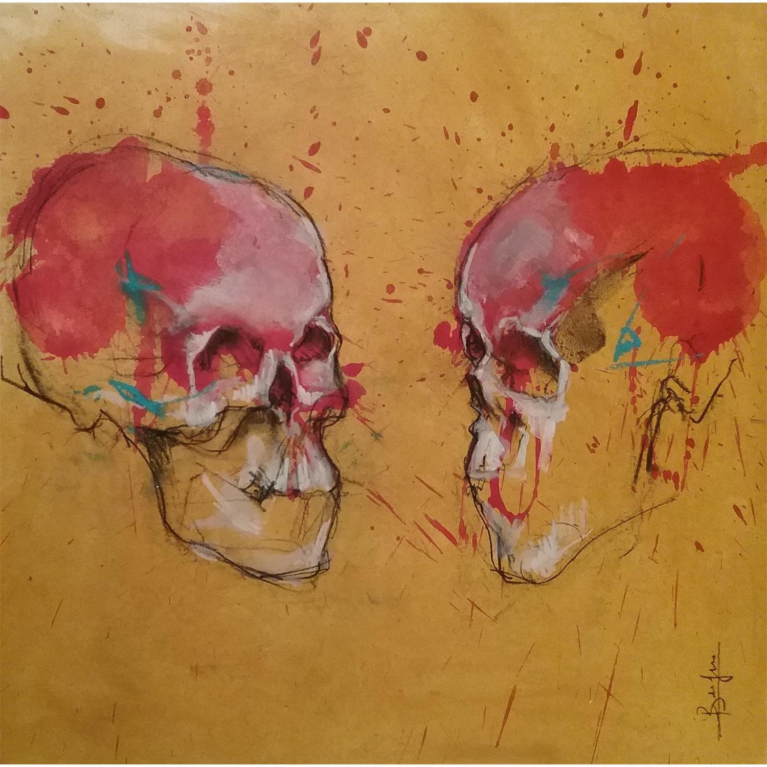 Cette oeuvre d'art contemporain unique et originale "Carton d'étude : 2 vanités" a été réalisée par l'artiste contemporain Bergues Laurent.
