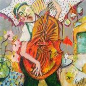 Cette oeuvre d'art contemporain unique et originale "Cellist under the sun" a été réalisée par l'artiste contemporain Garilli Nicole.
