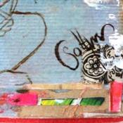 L'artiste a utilisé la technique mixte, Upcycling, Pastel sec, Encre, Acrylique, Up cycling pour créer cette peinture petit format toile sur Bois de style Art Singulier.