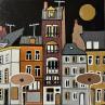 Peinture Lille la nuit par Lovisa | Tableau Figuratif Urbain Acrylique Collage Posca Textile Feuille d'or Upcycling Papier