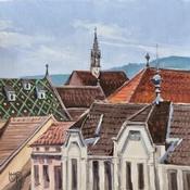 Peinture Colmar rooftops and distances par Rasa | Tableau Figuratif Urbain Acrylique