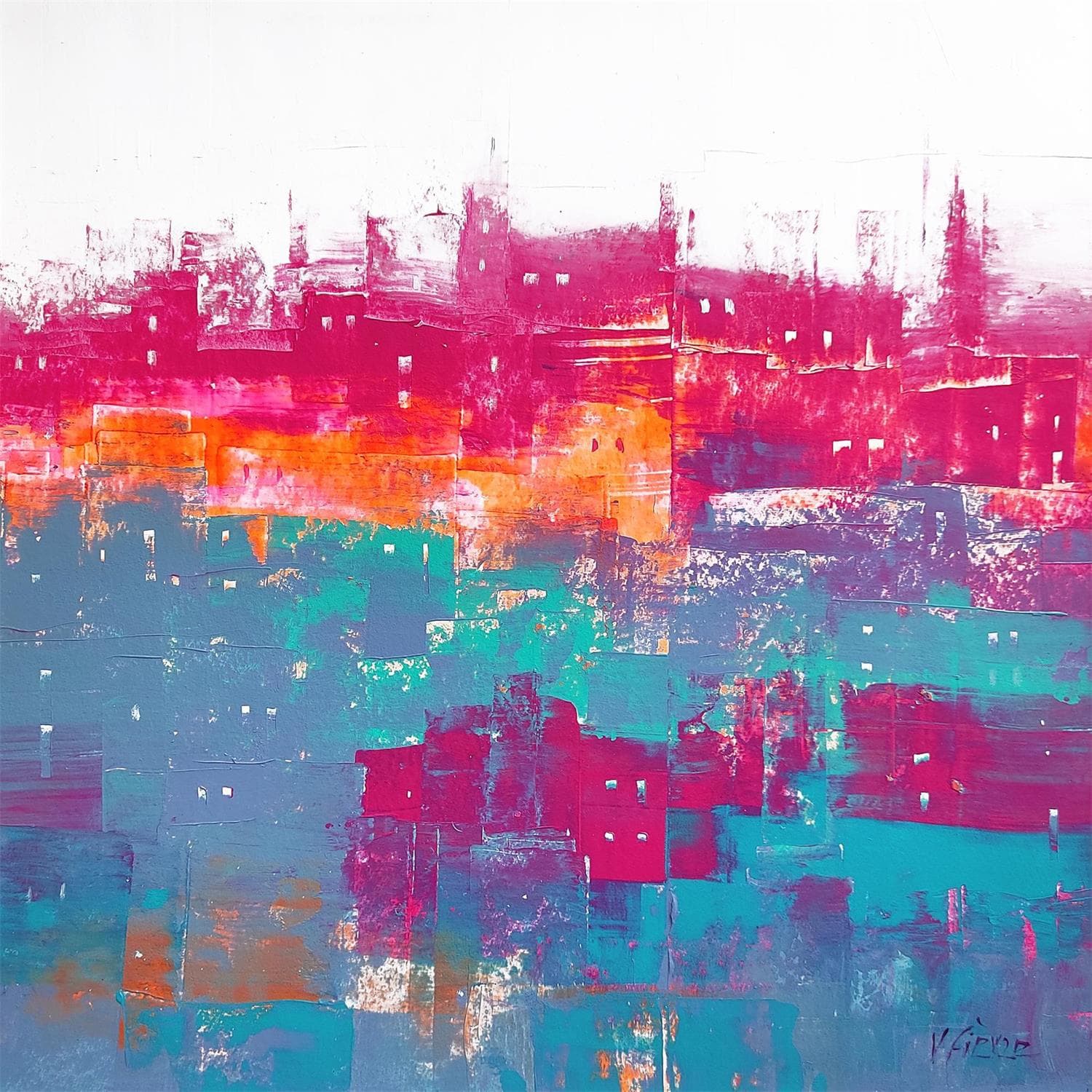 Cette oeuvre d'art contemporain unique et originale "Ville fortifiée" a été réalisée par l'artiste contemporain Fièvre Véronique.