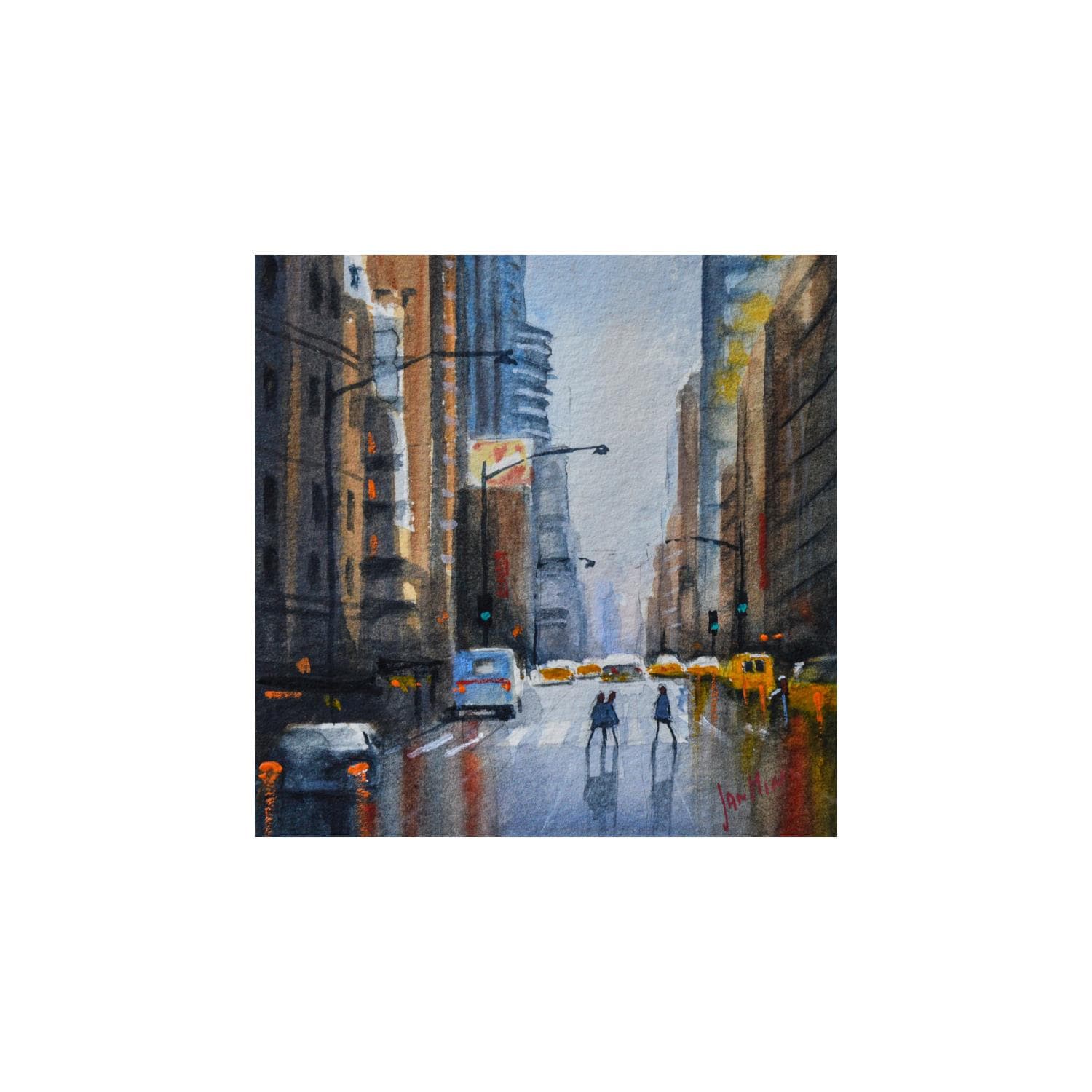 Peinture New York ,yellow cabs par Min Jan | Tableau Figuratif Urbain Aquarelle