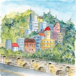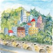 Peinture Vue banlieue par Balme Delphine | Tableau Figuratif Paysages Aquarelle