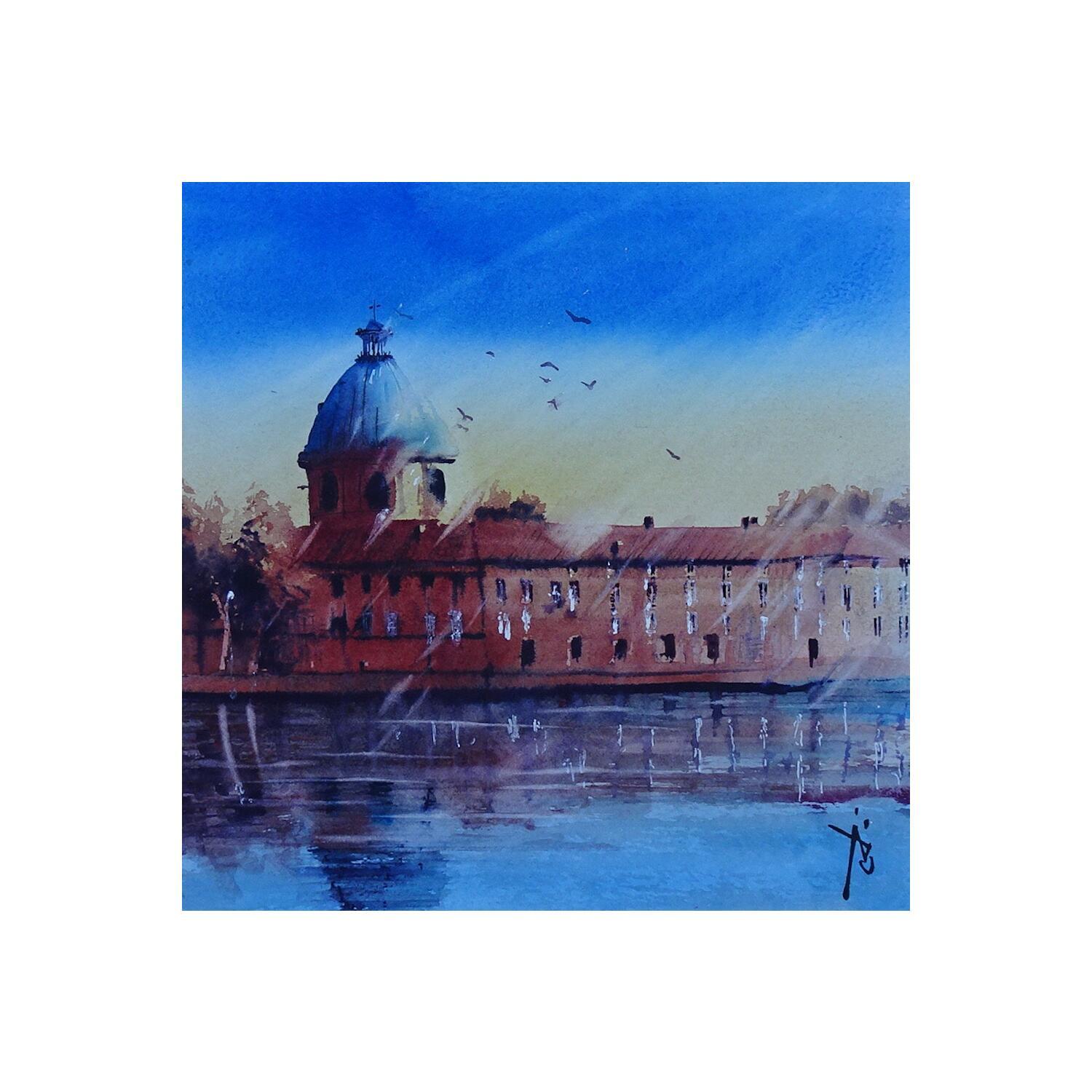 Peinture Dôme Pourpre par Abbatucci Violaine | Tableau Figuratif Aquarelle