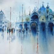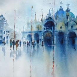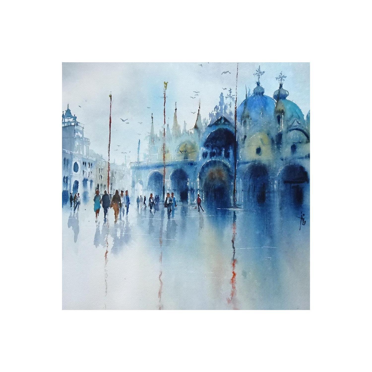 Peinture Saint Marc est dans la place par Abbatucci Violaine | Tableau Figuratif Aquarelle