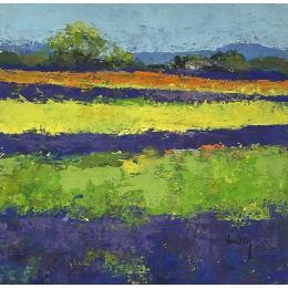 Cette oeuvre d'art contemporain unique et originale "Les lavandes à Sault" a été réalisée par l'artiste contemporain Vaudron.