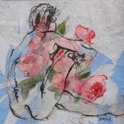 Peinture Homme fleurs 21 par Labarussias | Tableau Figuratif Nu Collage