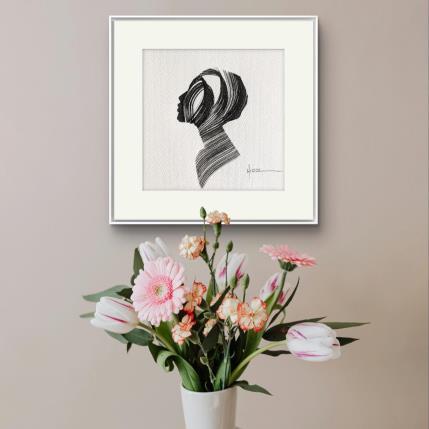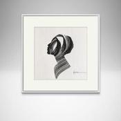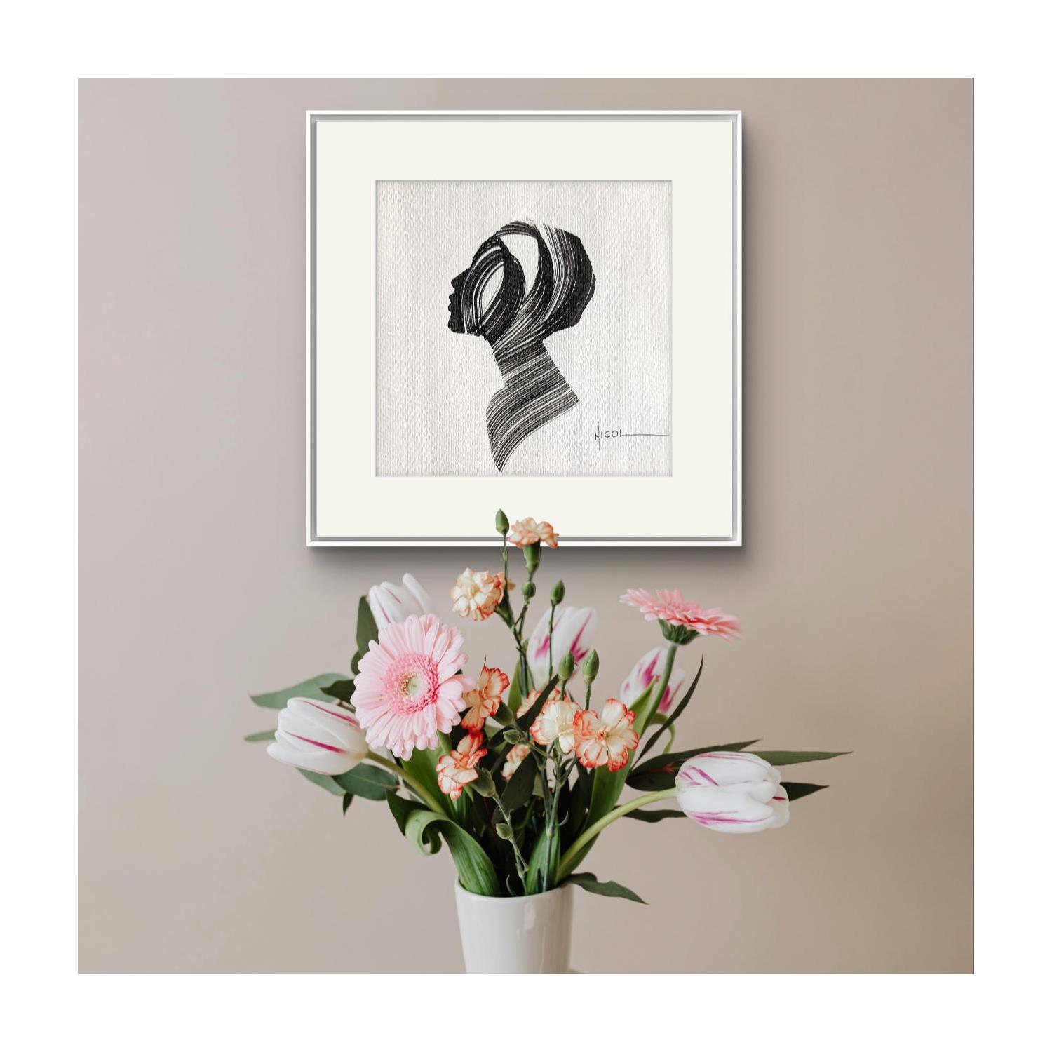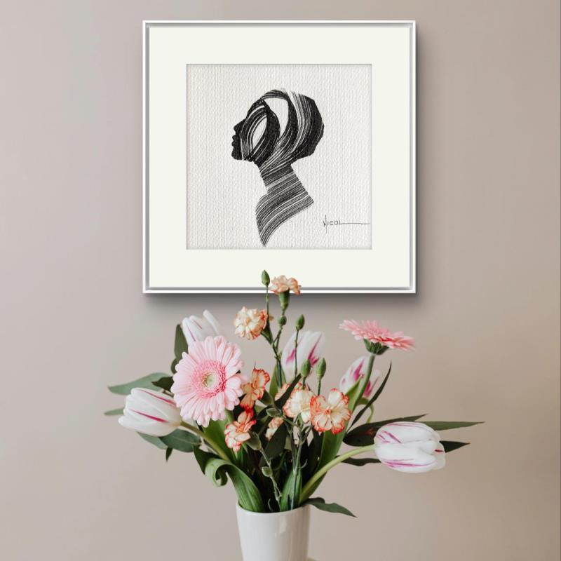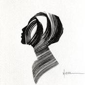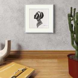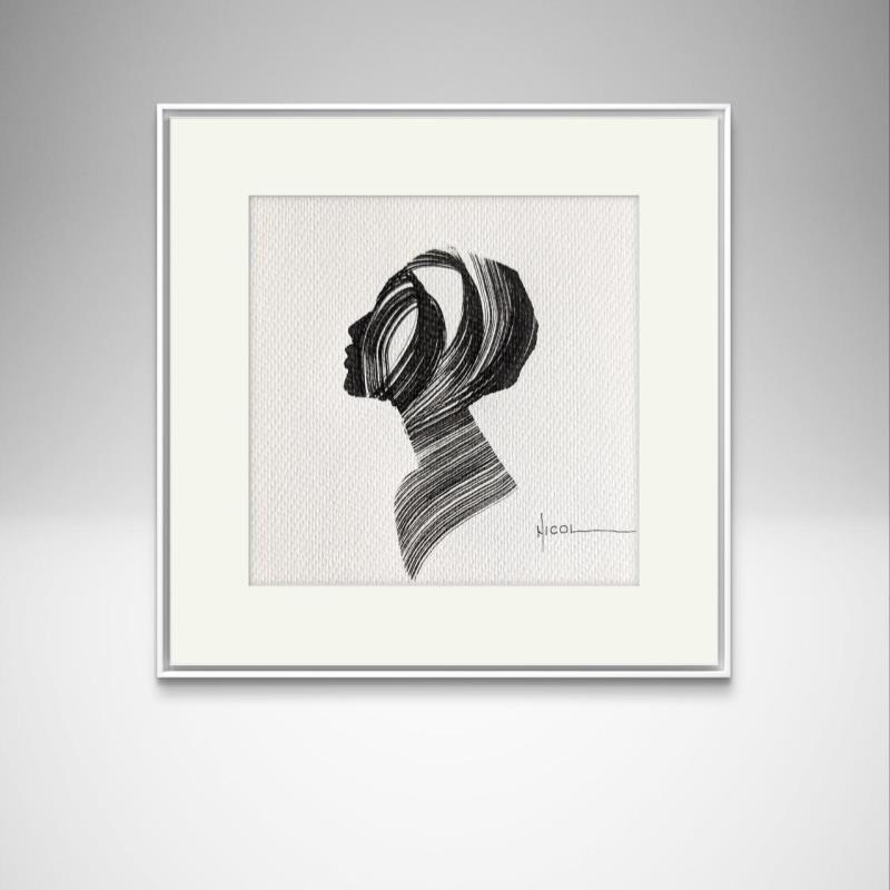 L'artiste a utilisé la technique Encre pour créer cette peinture petit format sur Papier de style Figuratif sur les thèmes Portraits, Minimaliste, Noir & blanc.