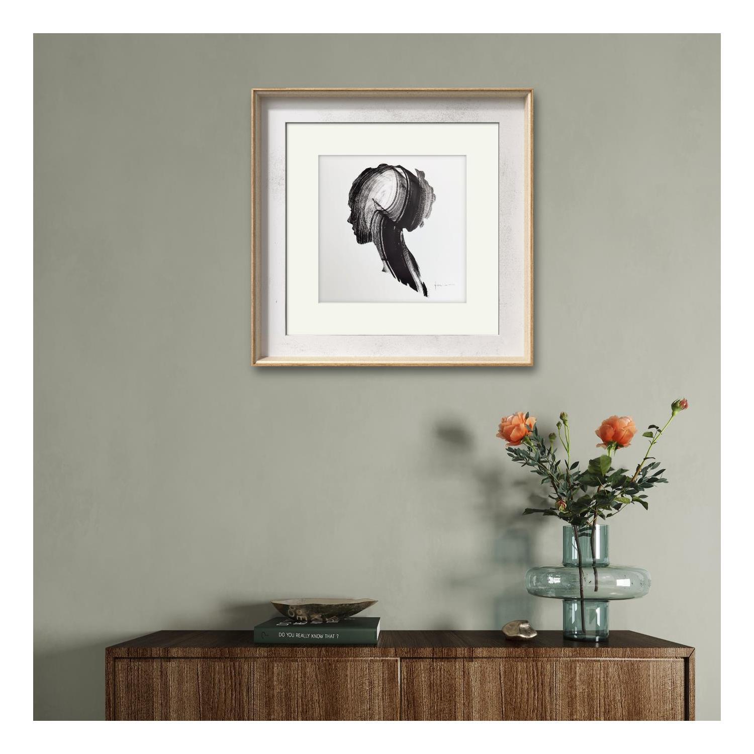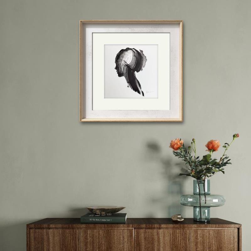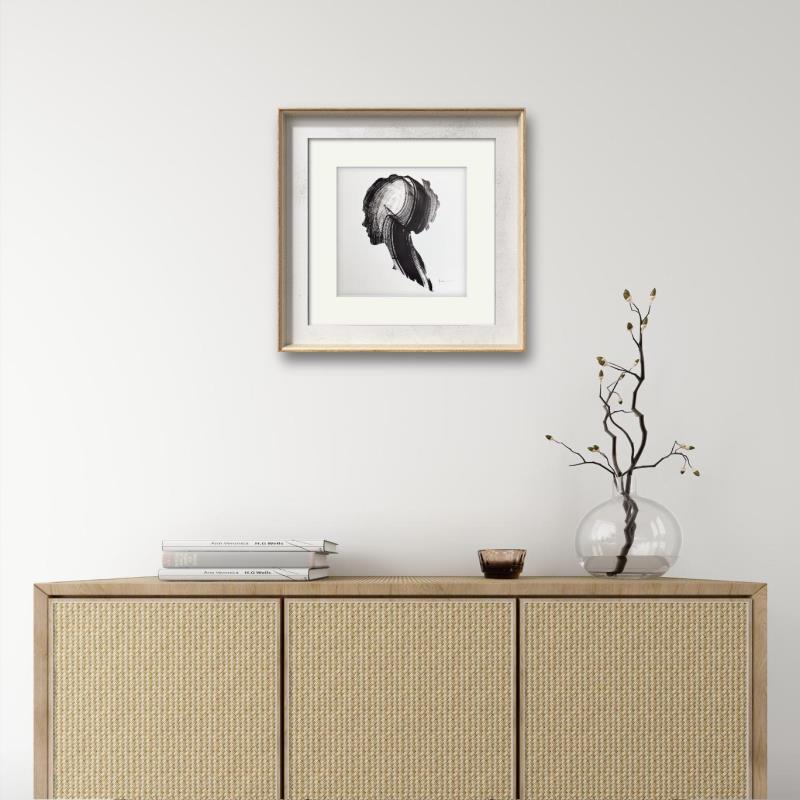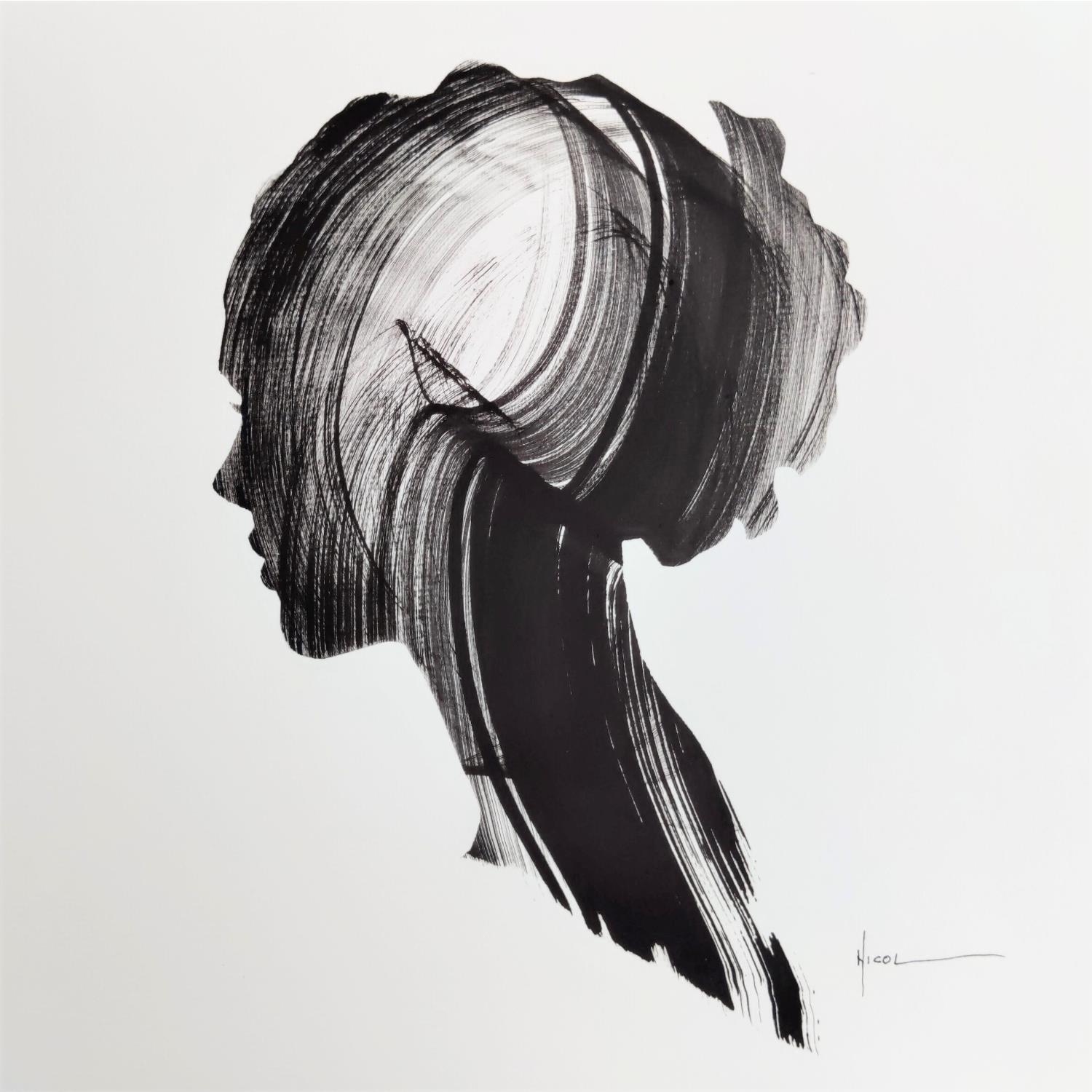 Cette œuvre d'art contemporaine unique et originale intitulée "Time LV" sur le thème du portrait a été créée par l'artiste contemporain NICOL. L'artiste a utilisé de l'encre sur papier pour créer cette peinture figurative de petit format.