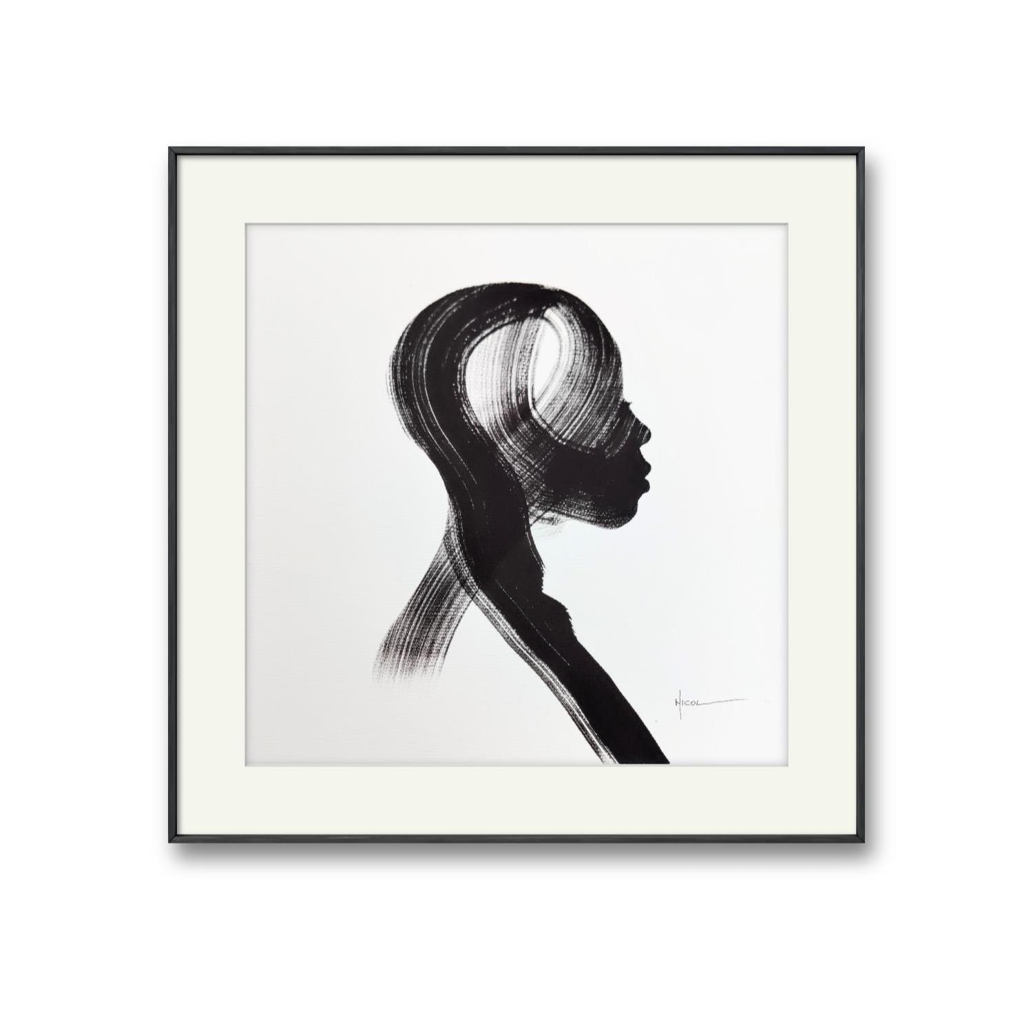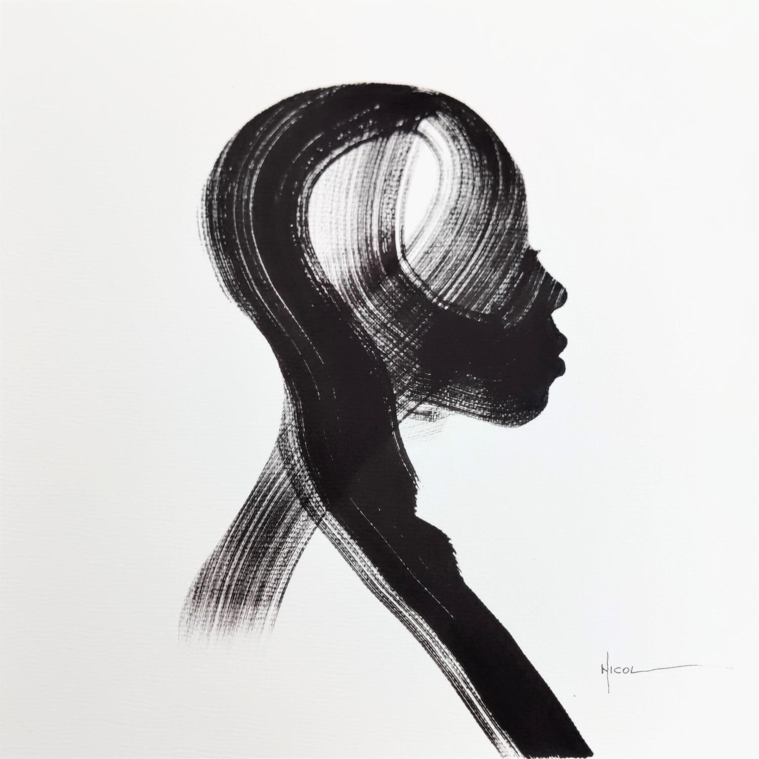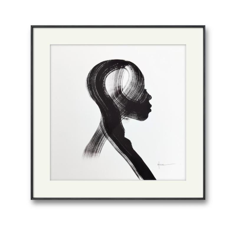 Cette œuvre d'art contemporaine unique et originale "Time LXI" sur le thème du portrait a été créée par l'artiste contemporain NICOL . L'artiste a utilisé de l'encre sur papier pour créer cette peinture figurative de petit format.