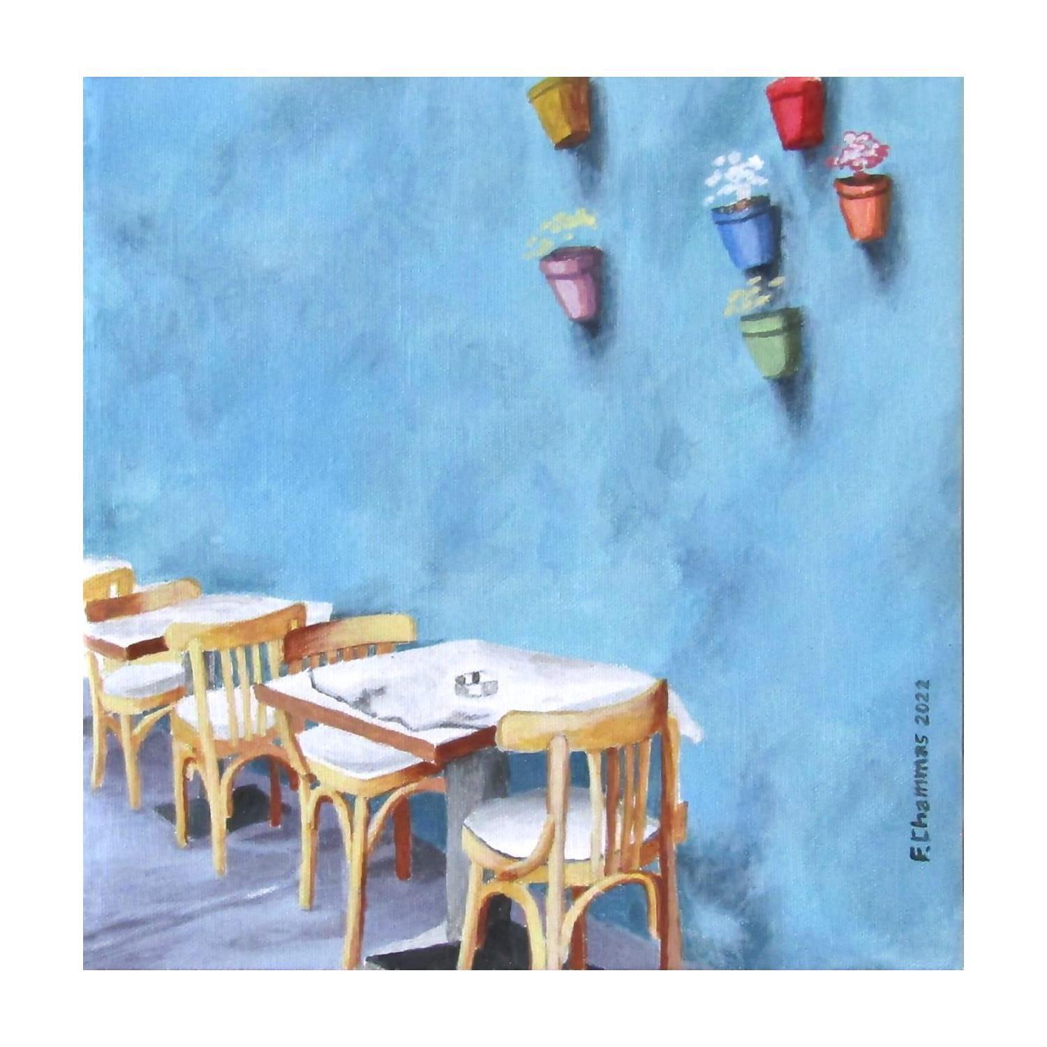 Peinture Blue Wall Tavern par Chammas Fady | Tableau Figuratif
