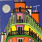 Peinture Nuit Pop par Lovisa | Tableau Figuratif Urbain Acrylique Collage Posca Feuille d'argent Upcycling