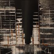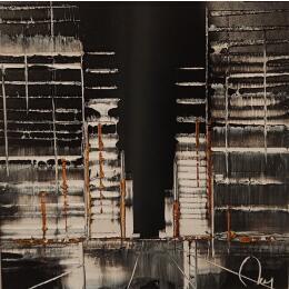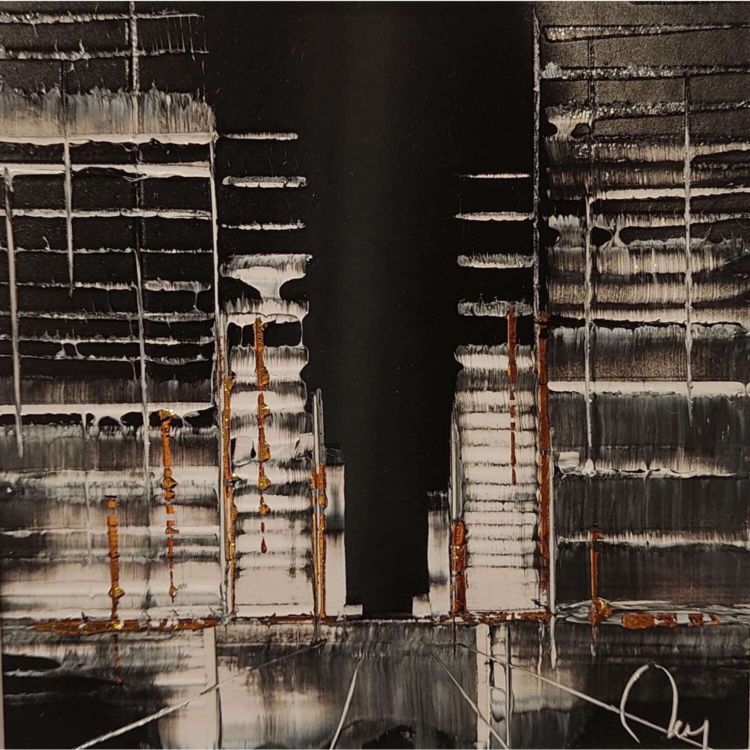 Bien qu'étant achromatopsique (absence de perception des couleurs), Julien Rey nous fait voyager à travers ses toiles aux paysages urbains. L'histoire de Julien Rey commence comme toutes les belles histoires : par un rêve impossible. Achromatopsique, l'artiste ne voit qu'en noir et blanc. Pourtant, cette maladie ne l'empêche pas de voyager aux confins de la Birmanie, de changer de vie (il y devient moine bouddhiste) ou de se lancer dans l'art. De son voyage en Birmanie, il ramène une parfaite maîtrise de la feuille d'or, élément caractéristique de son travail. Sa technique à base de laque travaillée au couteau et d'incrustations de feuille d'or place la lumière au centre de ses œuvres. Marqué par la philosophie zen, il réalise des compositions minimales qui apparaissent comme des instants suspendus, des pauses poétiques.