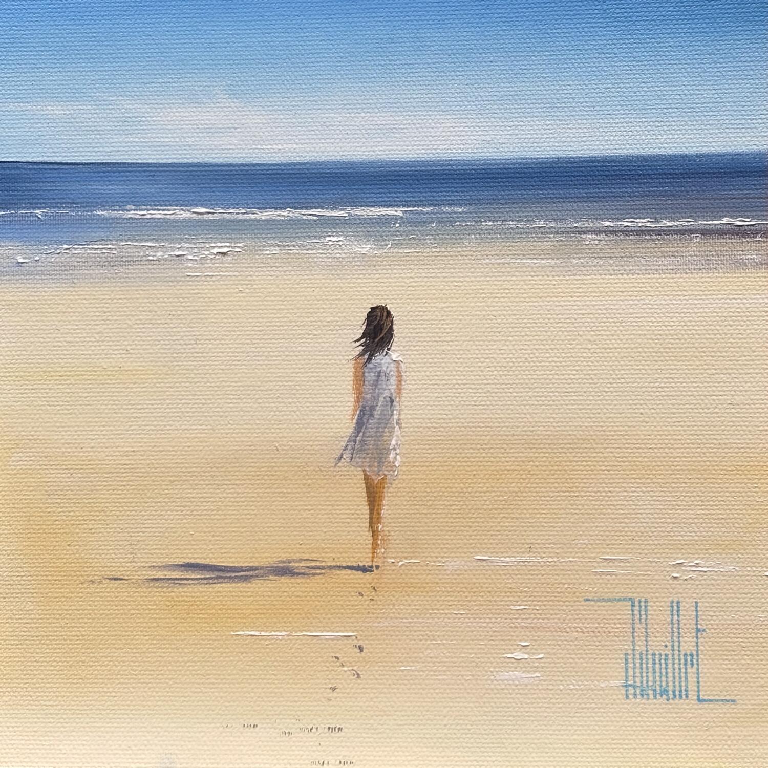 La jeune fille et la merPeinture La jeune fille et la mer par Guillet Jerome | Tableau Figuratif Huile